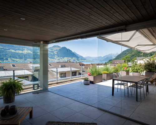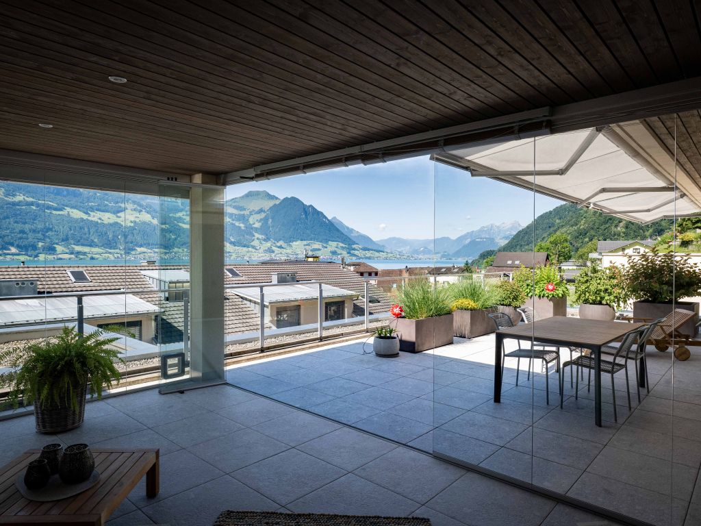 4.5-Zimmer-Terrassenwohnung mit Sicht auf den Vierwaldstättersee und die BergeGütschstrasse 24f, Gersau, Schwyz, 6442 Gersauzu verkaufen CHF 1.850.000,00In Gersau verkaufen wir an einer aussergewöhnlichen Wohnlage eine lichtdurchflutete und moderne 4.5-Zimmer-Terrassenwohnung mit Sicht auf den Vierwaldstättersee und die Berge. Die Terrassen-Wohnung verfügt über einen direkten Liftzugang zur Terrassenwohnung, ein lichtdurchflutetes Wohn- und Esszimmer mit breiter Fensterfront und angrenzender grosser Terrasse mit Wintergarten von welchem man einen herrlichen Blick auf den Vierwaldstättersee, die Berge und die Natur hat, eine offene und moderne Küche, ein herrlich grosses Badezimmer mit Badewanne, Dusche, Lavabo und Toilette, welches mit exklusiven Wandplatten ausgestattet ist, ein Elternschlafzimmer mit angrenzender Ankleide und Zugang zur Terrasse und zwei weiteren hellen und modernen Zimmer. Alle Zimmer sind mit echtem Eichenparkett ausgestattet und hat viel Stauraum durch Einbauschränke. Haben wir Interesse an der modernen 4.5-Terrassenwohnung geweckt, dann nehmen Sie Kontakt mit uns auf. Wir stellen Ihnen die Terrassenwohnung gerne persönlich vor. Auf einen Blick